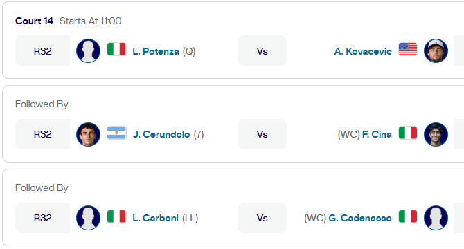 L’incontro è in programma sul campo 14 come terzo match.