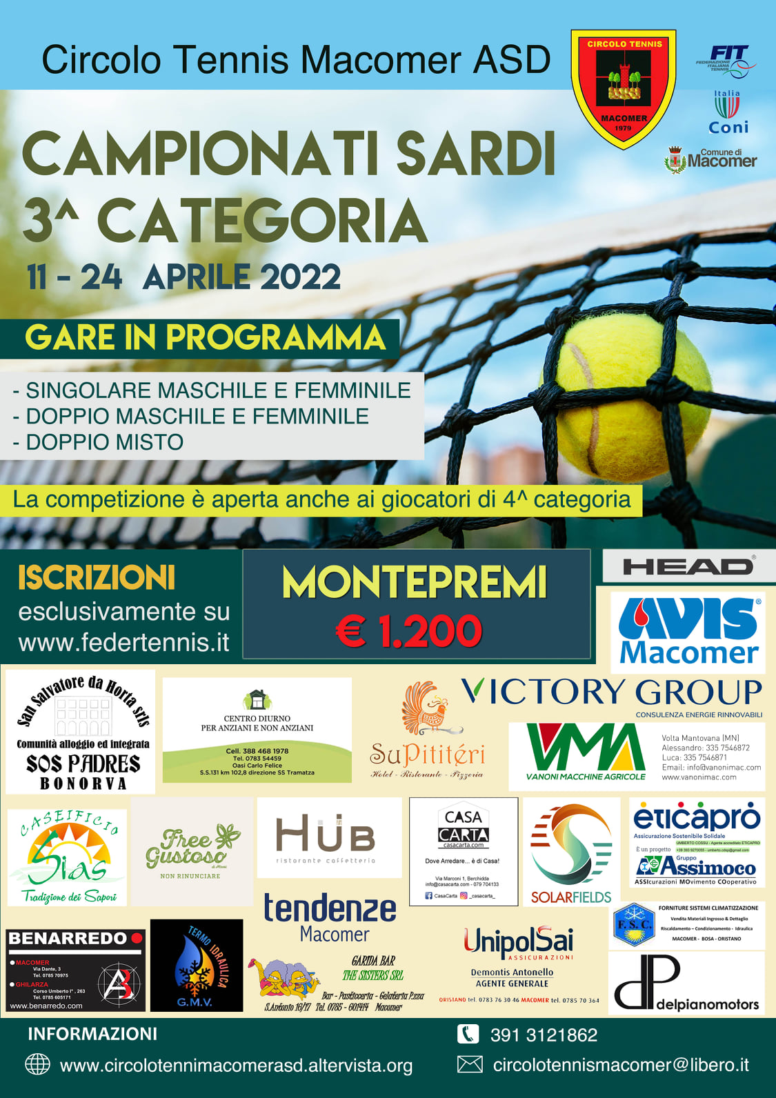 Il torneo è aperto anche ai giocatori e alle giocatrici di IV categoria L’ASD Circolo Tennis Macomer organizza e ospita sui propri campi di via Lussu i campionati sardi di III categoria, dall’11 al...