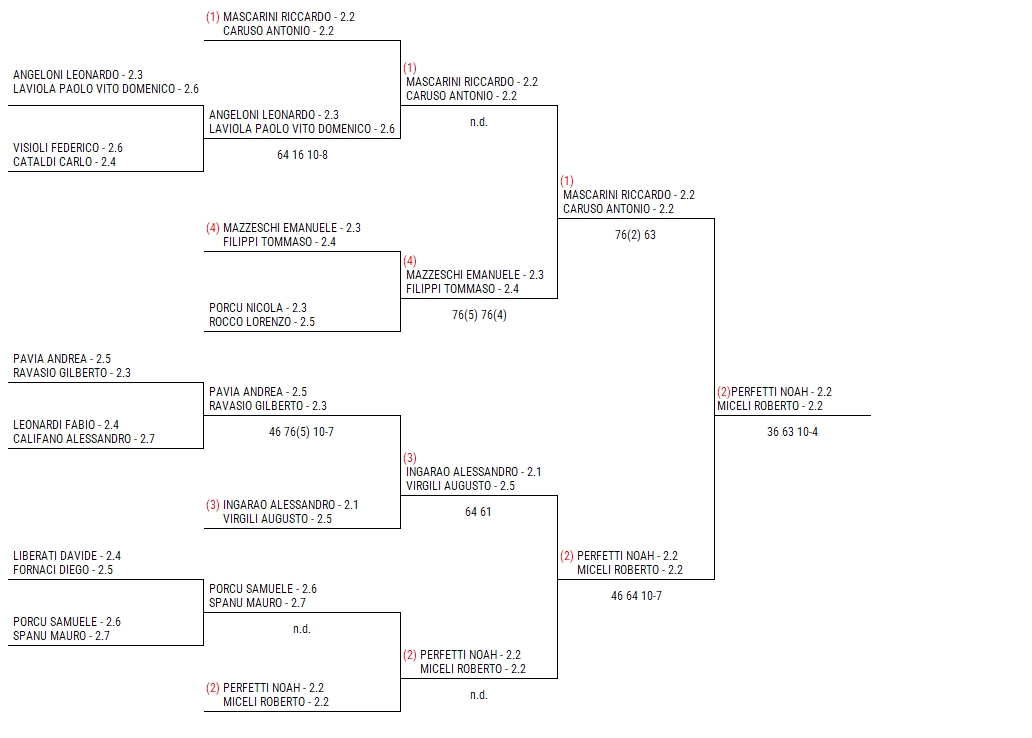 Perfetti-Miceli b. Caruso-Mascarini 3-6, 6-3, 10-4